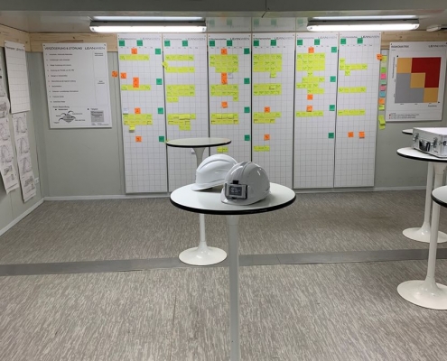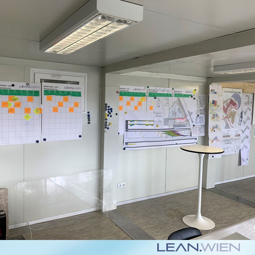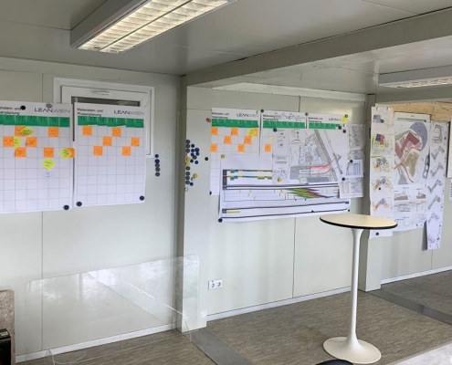 Hier finden die wöchentlichen Lean-Besprechungen mit allen beteiligten Gewerken statt, um diese in der Steuerung möglichst gut einzubinden.
