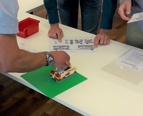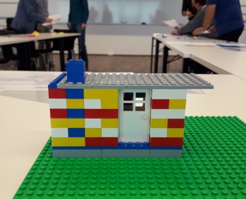 Vor kurzem fand der Startworkshop zu einem Bauvorhaben mit einem Simulationstraining statt, bei dem von verschiedenen Gewerken ein buntes LEGO-Haus zu errichten war.